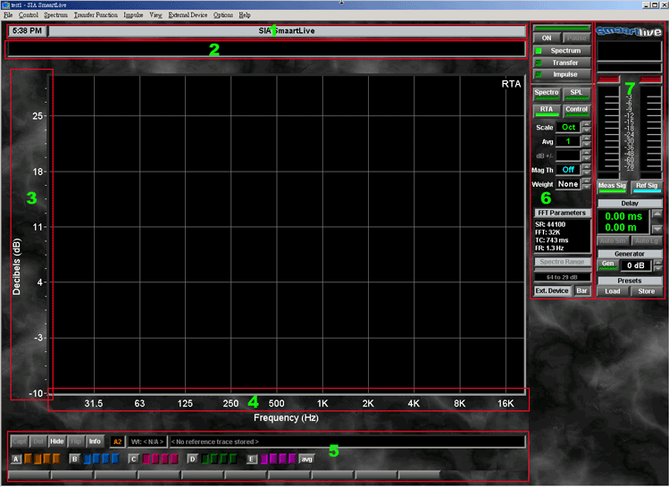 3、4.Polt Area ( 圖標區域 ),無論目前所顯示的是何種模式,如 RTA、Impuls、Transfer 等,各式
