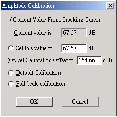 2. 用滑鼠在 RTA 的大框框內快點兩下,它會跳出 Amplitud Calibration ( 強度測定 ) 的設定頁面,如圖示。