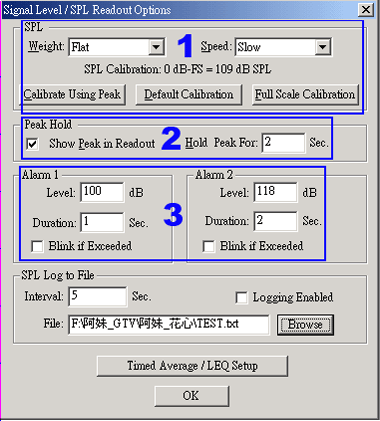1. SPL ( 音壓 ),各位要注意的是當你選擇是 SPL 的模式,刻度值將是以音壓標記為主,而你所校準完的
