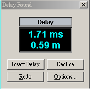 圖 T-3 就是利用 Auto Sm ( Auto -Locate Delay Small ) 去自動的計算出原訊號與經過被測元件之間的時間差,然後畫面會跳出一個標示 Delay Found ( 延遲時間找到 ),一般這是很準確的計算出來的。 Insert Delay ( 插入延遲時間 ),就是你接受然後把這時間差加入。 Decline ( 拒絕 ),此次的運算你不想要就放棄掉。 Redo ( 再一次 ),重新運算延遲時間的動作。 Option ( 選擇 ),這個按鍵點下後會回到 Option 以下的 Impulse/Locator 的畫面,這是傅利葉數學的運算過程中,你可以去調整一些 參數及取樣、記憶空間的設定,例如如果是使用麥克風做現場的測試,那麼溫度就會影響聲距,在這裡都可以得到一個適度的調整。 經過時間的校準後,數據顯示窗就會精確的測出 DSP-8000 的頻率響應以及相位的穩定性數據, 圖 T-5 是一台老 EQ,Audio Logic,是一台類比的機器,經過測試後,它的電路是沒有時間差的,然後你可以看到那相位時間的 曲線,此時我們將 1KHz 的值增加到 12 dB,從相位時間來看你可以觀看那 1K Hz 上下倍頻 ( 500 Hz、2 KHz ) 的時間導前與相後而 形成所謂的 1 KHz 的值增加之意,相對的從 Transfer 的頻率響應看到,當你增加了 12 dB 在 1 KHz,那上下倍頻 ( 500 Hz、2 KHz ) 的中間頻率恰巧是 6 dB 被增加。 |