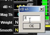 | 你可以用滑鼠點選上下的三角圖案,或是直接游標移 到 dB 數值的位置點一下左鍵填入差額即可達到校準 的目的。圖 T-9 以及 T-10 就是使用的圖例表示。 |