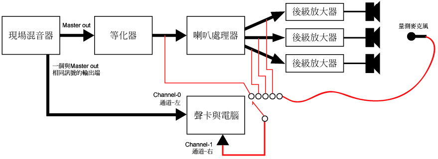 | 續上回的淺談 SIA - 5 SPECTRUM 後,現在我們來操作 Transfer 的運用,就其所述的 Transfer ( 轉移,變換 ),轉移什麼?我們來看它的功能作用就可以知道為何是 這個名稱,Transfer 的運用並不一定要使用其內置的訊號產生器,你可以使用外來的訊號例如 CD、訊號產生器等,大原則是你必須清楚的 Channel 左 是測量的 訊號,也就是經過元件或是空氣、距離的訊號,而 Channel 右 是參考訊號輸入端。 Transfer 的功能主要是使用在去設定調整聲音系統、喇叭處理器、等化器、觀察有聲的頻域等,主要的量測方式它是採用精深的傅利葉數學,在兩個訊號間去比較, 比對,請注意這兩個訊號其中一個是經過被測的元件的。 如此的運算下會轉移出一個數值然後變換成圖形曲線提供給使用者快速瞭解過程。 Transfer 的數學比較方式基本就是把一個原始訊號分成兩路,一路直接進入輸入,一路則是經過被測元件後再輸入,如此即可以去比對出元件的忠實性質, 以下方所列的簡圖及可以瞭解 Transfer 基本比對的量測原理,Transfer 只工作在 FPPO 模式,Fixed - Point - Per - Octave Transfer ( 固定的每八度音的轉移顯示 )。 _ |