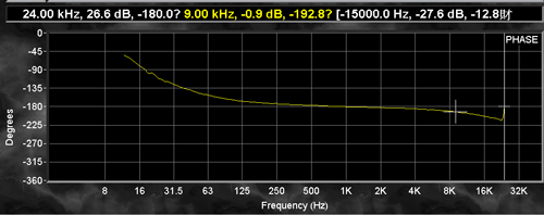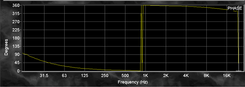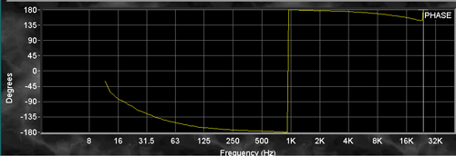 | 那麼反相怎麼看?圖示 T-5 是一個正常相位的輸出顯示,現在我們把被測元件 EQ 的輸出接一調 Pin-2、3 反相的導線瞧瞧,在圖 P-3 的顯示下你可以看到開頭的 時間是在負值,那個頻率反相幾度,同樣的使用滑鼠十字標移到你想要知道的位置它就會告訴你所有的數據,又在 1 KHz 的位置因為相位時間的原因, 在視覺上就比較不好理解,此時利用 U 鍵展開相位的顯示,再利用 Alt+ Up / Down 按鍵來選擇自己能裡解的顯示刻度,以圖 P-4 我將其展開 360 度, 你可以快速的瞭解訊號接腳 Pin-2、3 反相時所有的相位時間是負值的,以上就是 Phase 的簡單使用介紹。 _ |